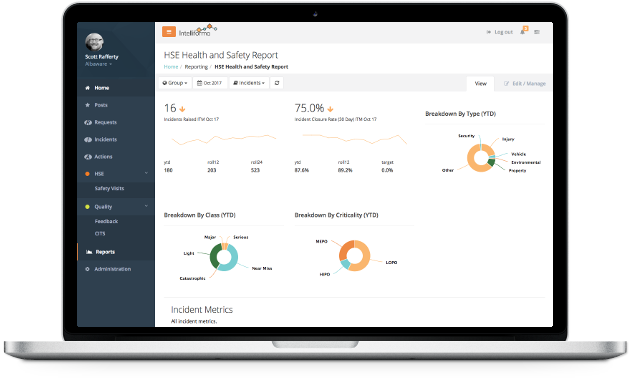 Le module HSE complète le système Intelliforma RIAS existant. Les classifications sont basées sur la méthode SCAT standard de l'industrie et vous pouvez créer ou importer votre propre matrice de risque personnalisée et votre classification personnalisée pour les demandes et les incidents. Ce module permet également le suivi et la gestion des visites de sécurité.